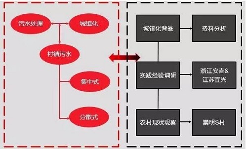 城鎮(zhèn)化下污水處理集中式和分散式問題的集中點(diǎn)聚合在村鎮(zhèn)污水處理領(lǐng)域。本著充分了解現(xiàn)有處理經(jīng)驗(yàn)和實(shí)地現(xiàn)狀的目的,首先結(jié)合城鎮(zhèn)化發(fā)展背景和現(xiàn)有集中式污水廠資料,進(jìn)行集中式污水處理技術(shù)的統(tǒng)計(jì)分析;其次,了解在國內(nèi)外分散式污水處理模式的同時(shí),重點(diǎn)參觀學(xué)習(xí)國內(nèi)規(guī)劃設(shè)計(jì)較為成熟的村鎮(zhèn)(浙江安吉、江蘇宜興等地);最后,為更好的了解農(nóng)村污水處理的現(xiàn)狀,在我們熟悉的上海崇明深入農(nóng)村當(dāng)?shù)兀M(jìn)行實(shí)地走訪、實(shí)驗(yàn)調(diào)查,充分了解當(dāng)?shù)爻擎?zhèn)化污水處理規(guī)劃中的問題。