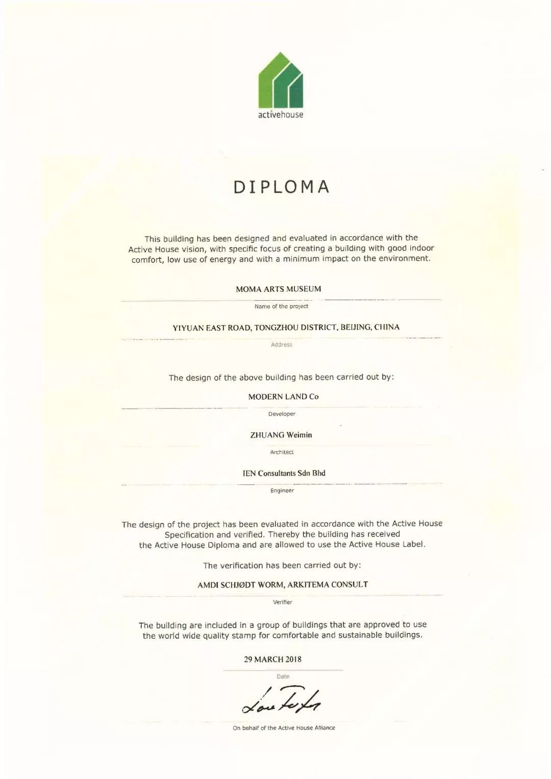 清華大學(xué)建筑設(shè)計研究院項目首次獲得主動式建筑ACTIVE HOUSE國際聯(lián)盟認證