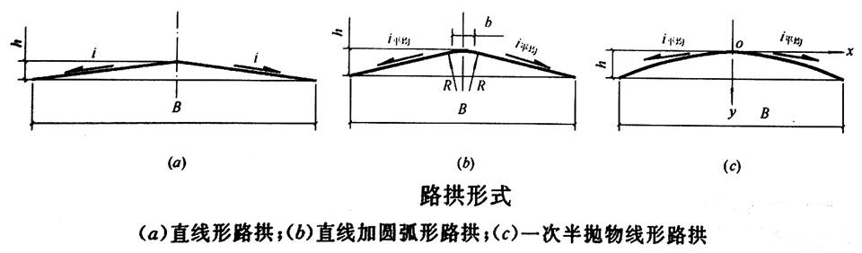 道路在橫向上單位長度內升高或降低的值,稱為路拱坡度(i),通常用%、‰或小數值表示 。