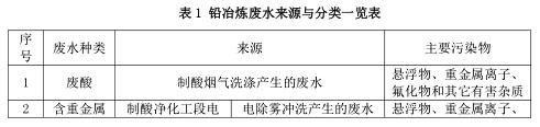 鉛冶煉廢水來(lái)源與分類(lèi)見(jiàn)表1。