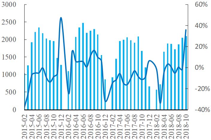2018年10月華北水泥產量增速大幅提升