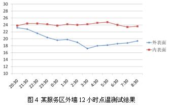 5、服務(wù)區(qū)建筑設(shè)計(jì)技術(shù)層面存在的問(wèn)題,就是基本上未考慮“四節(jié)一環(huán)保”的要求,因此根本上達(dá)不到國(guó)家《公共建筑節(jié)能設(shè)計(jì)標(biāo)準(zhǔn)》規(guī)定節(jié)能50%的要求,這從我們?cè)趯?shí)地調(diào)研中對(duì)幾個(gè)服務(wù)區(qū)綜合樓的熱工測(cè)試結(jié)果(如圖4所示)可以看得出來(lái)。