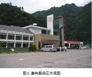 受占地空間的限制,服務(wù)區(qū)內(nèi)會(huì)最大程度地增加建筑面積和停車(chē)場(chǎng)面積,如服務(wù)區(qū)規(guī)劃設(shè)計(jì)充分利用原地貌、地物資源,結(jié)合周邊地理環(huán)境進(jìn)行設(shè)計(jì),這實(shí)際上將是對(duì)自然環(huán)境的開(kāi)發(fā)和保護(hù),如圖6所示西漢高速公路的秦嶺服務(wù)區(qū)即為一例。