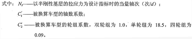 2 當瀝青路面以半剛性基層層底拉應力為設計指標時,各種軸載換算成標準軸載P的當量軸次NS應按下式計算: