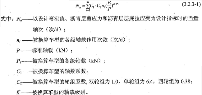 3 應根據預測交通量,考慮各種車型的交通組成(或比例),將不同車型的軸載換算成標準軸載的當量軸次,求得營運第一年單向日平均當量軸次。