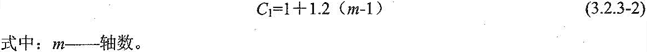 當軸間距大于或等于3m時,應按一個單獨的軸載計算;當軸間距小于3m時,雙軸或多軸的軸數系數應按下式計算: