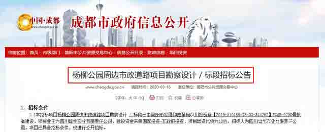 簡陽城北方向的公園方案昨日,簡陽市四川雄州實業(yè)有限責任公司正式啟動了《楊柳公園周邊市政道路項目勘察設計》的招標,從招標信息中我們可知以下信息:
