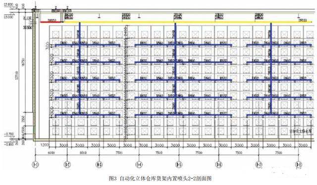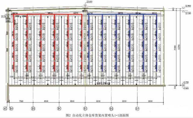 1、自動化立體倉庫由于最大儲物高度超過13.5m,頂板下噴頭無法滿足滅火要求,需要頂板下噴頭和貨架內噴頭結合布置,達到滅火作用,頂板下噴頭采用的噴頭特性系數需要通過計算確定,需滿足噴頭噴水強度要求。