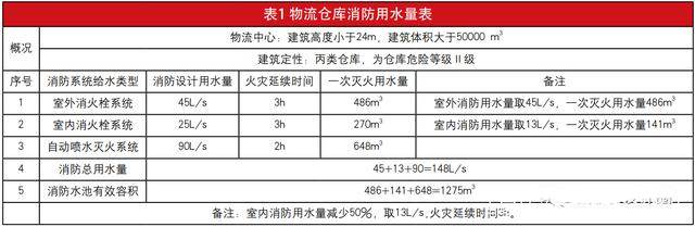 (六)消防水量計算(見表1)