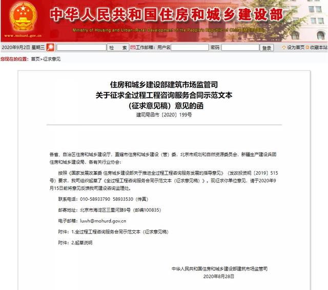 重磅!2020年8月28日住建部發(fā)布《全過程工程咨詢服務合同示范文本(征求意見稿)》(以下簡稱“合同示范文本”),用于指導全過程工程咨詢服務服務合同當事人的簽約行為。國家的目的是要重點支持全過程工程咨詢服務的發(fā)展。