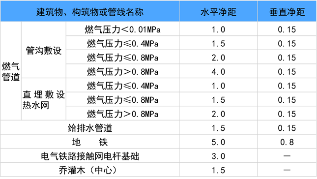 地下敷設熱網與建(構)筑物或其它管線距離