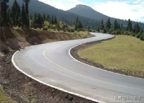 (4)長直線或長下坡盡頭的平曲線,除曲線半徑、超高、視距等必須合規(guī)定外,還必須采取設(shè)置標(biāo)志、增加路面抗滑能力等安全措施。
