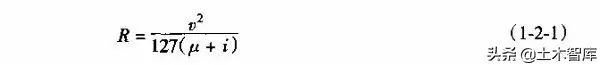 由第一章汽車行駛理論,根據(jù)汽車行駛在曲線上力的平衡式(1-1-31)可知圓曲線半徑計算公式為