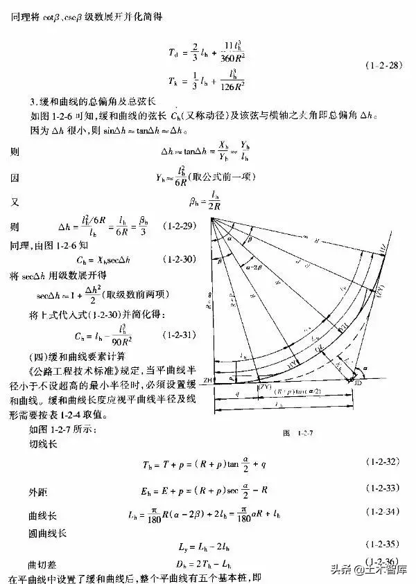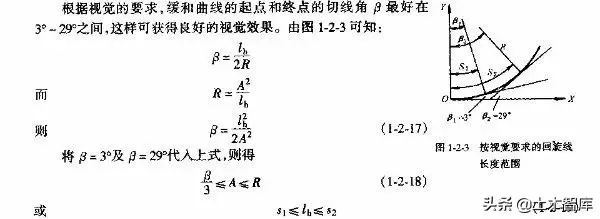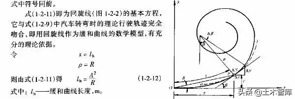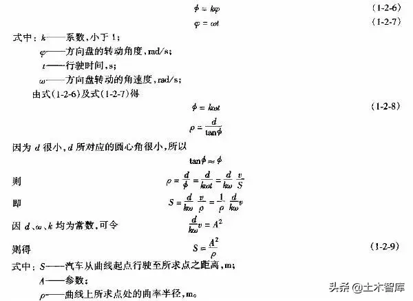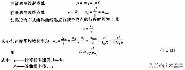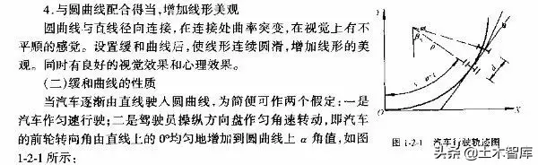 上式表明.最短的緩和曲線與半徑的大小無關(guān),即使平曲線半徑較大,當(dāng)汽車高速行駛時,也應(yīng)有個轉(zhuǎn)變過程,因而式(1-2-15)是高等級公路設(shè)置緩和曲線的校核式。
