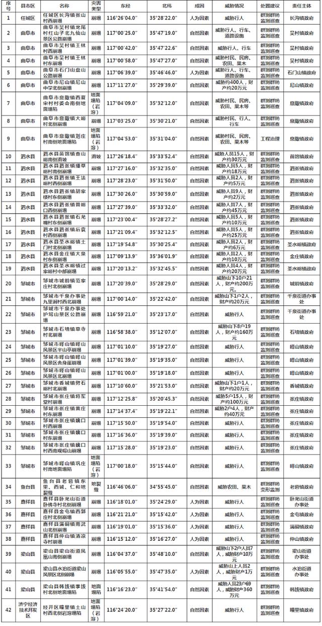 7月20日,記者從濟寧市人民政府官網獲悉《濟寧市2023年地質災害防治方案》,綜合分析研判,2023年全市地質災害類型仍以崩塌、地面塌陷為主,崩塌、滑坡多發生在每年6—8月,其中7月底、8月初降水相對集中,發生概率較高,具體防治方案如下: