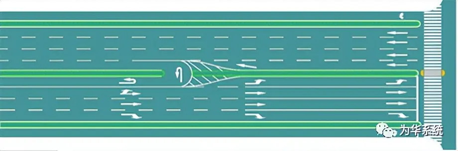 圖6 縮小機(jī)非分隔帶寬度并縮小車(chē)行道寬度設(shè)置右轉(zhuǎn)專用道