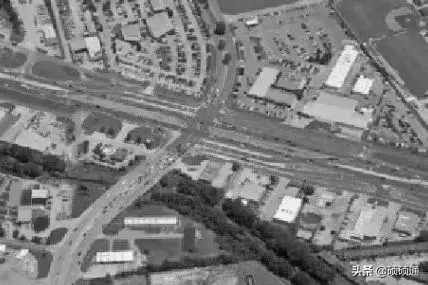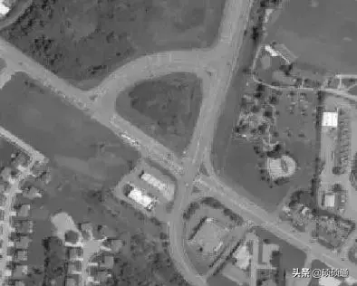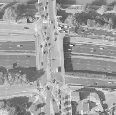 2000 年Jonathan Reid 提出一種新型交叉口設(shè)計(jì)方案,即扇形交叉口(Quadrant Roadway Intersection)。其設(shè)計(jì)思想是主交叉口禁止左轉(zhuǎn),利用十字交叉口某象限內(nèi)的連接通道組織車(chē)輛左轉(zhuǎn),簡(jiǎn)化主交叉口信號(hào)相位,從而提高交叉口運(yùn)行效率,改善主交叉口的擁堵?tīng)顩r。美國(guó)某城市的扇形交叉口實(shí)景圖: