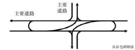 連續(xù)流交叉口的左轉(zhuǎn)和直行車(chē)輛的交通組織方式不同于傳統(tǒng)平面交叉口(見(jiàn)圖)。
