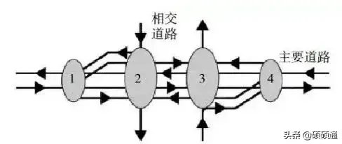 其設(shè)計(jì)思想是將左轉(zhuǎn)車(chē)流與對(duì)象直行車(chē)流的沖突點(diǎn)提前到路段,以減少主交叉口的沖突點(diǎn),簡(jiǎn)化主交叉口信號(hào)相位,通過(guò)路中交叉口與主交叉口的信號(hào)協(xié)調(diào)控制實(shí)現(xiàn)交通流的“連續(xù)”。
