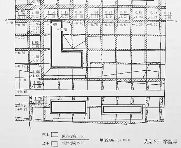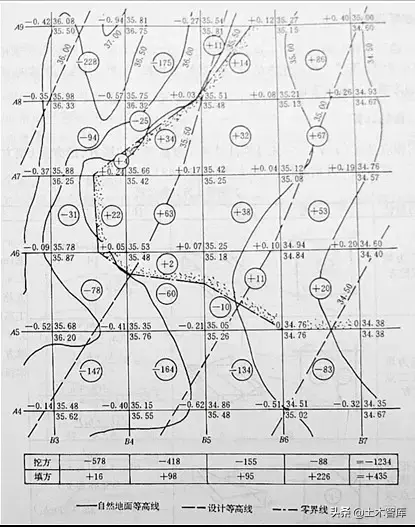 十五、施工高程的確定、標(biāo)注零界線、土方量的計(jì)算: