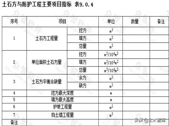八、土石方與防護(hù)工程主要項(xiàng)目指標(biāo):