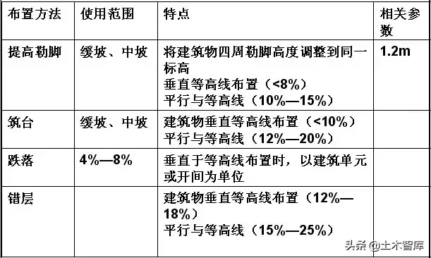 4、建筑物結(jié)合地形布置的方法: