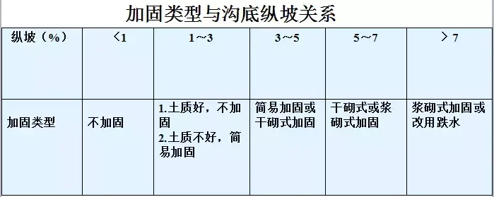 5.急流槽:在陡坡或深溝地段設置的坡度較陡、水流不離開槽底的溝槽稱作急流槽。急流槽的作用是在較短的距離內以溝渠的方式引排水流、降低水頭,進而防止沖刷(可用于比跌水更陡的坡度,可達600)。