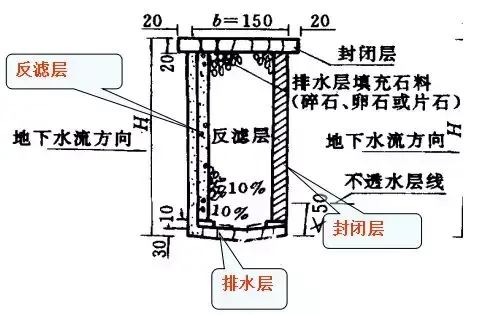 井壁和填充料之間設反濾層。