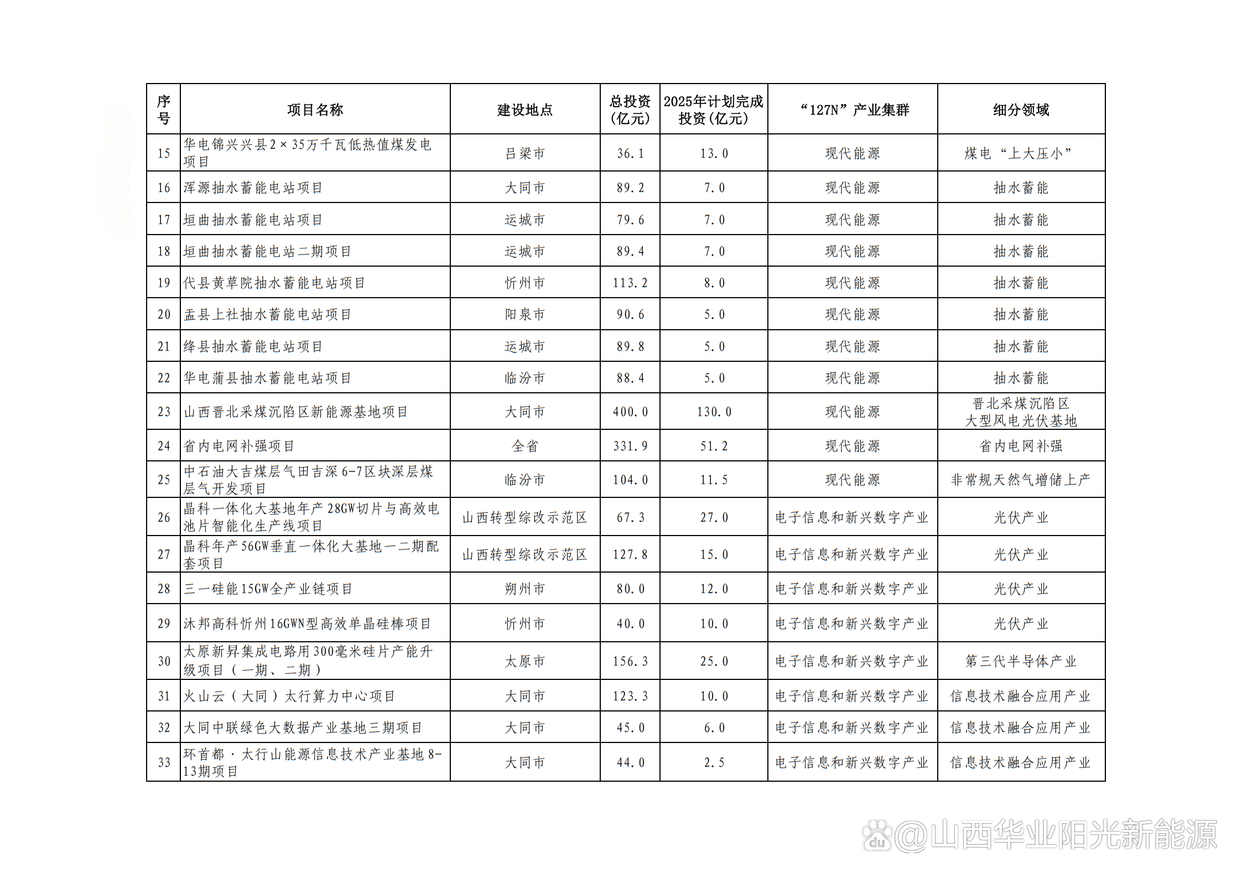 2.山西晉北新能源基地項目(含湖東“上大壓小”、同熱三期、風電光伏3個子項目),總投資553億元,年度計劃投資169.8億元,建設(shè)地點大同市。