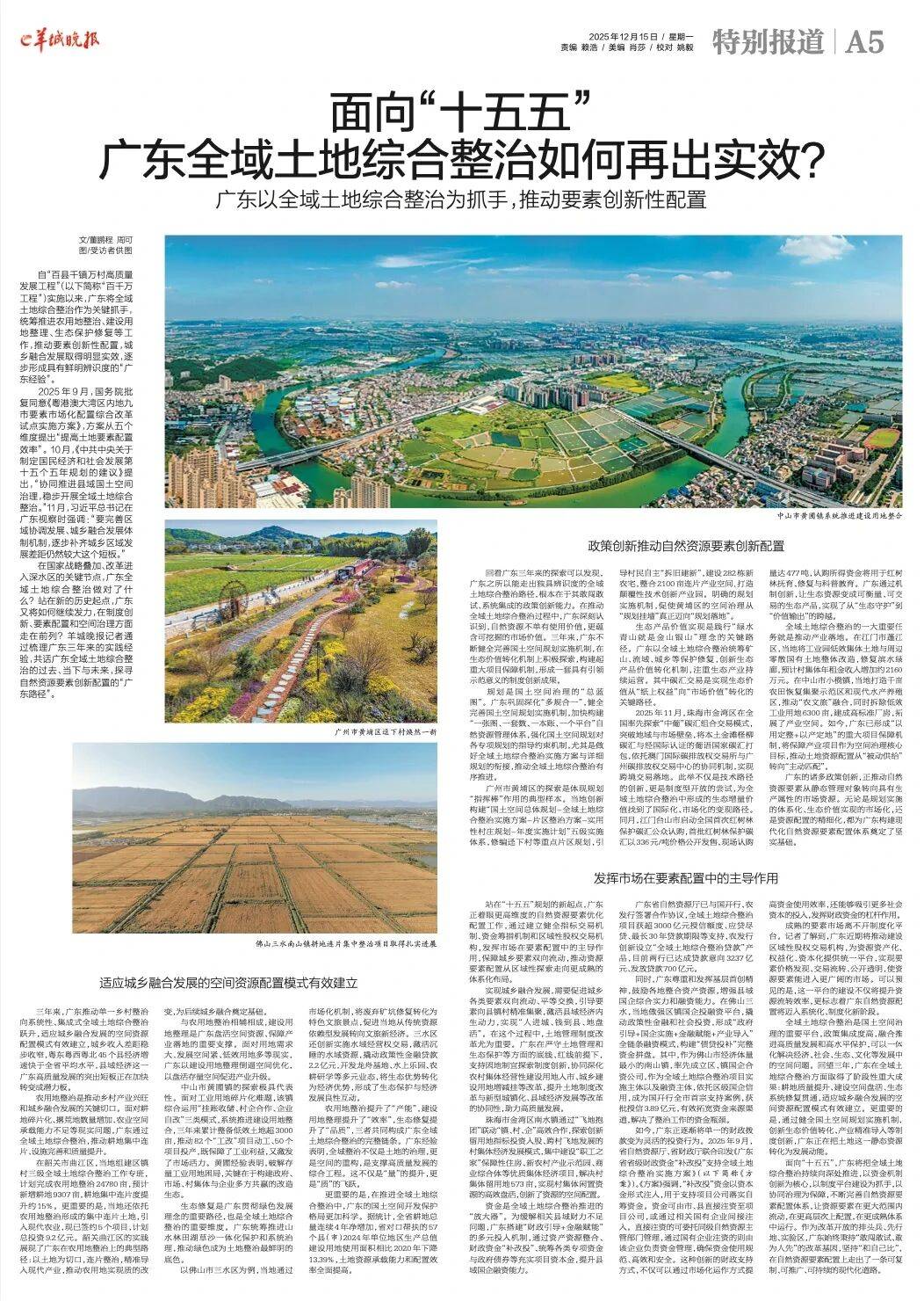 在國家戰略疊加、改革進入深水區的關鍵節點,廣東全域土地綜合整治做對了什么?站在新的歷史起點,廣東又將如何繼續發力,在制度創新、要素配置和空間治理方面走在前列?羊城晚報記者通過梳理廣東三年來的實踐經驗,共話廣東全域土地綜合整治的過去、當下與未來,探尋自然資源要素創新配置的“廣東路徑”。